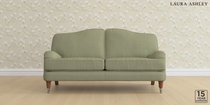 6.12.1 Buy Lynden by Laura Ashley 3 Seater Small Sofa Edwin Herringbone Hedgerow Green Ornate Chrome Castor - Teak from the Next UK online shop Click here to use our accessible website