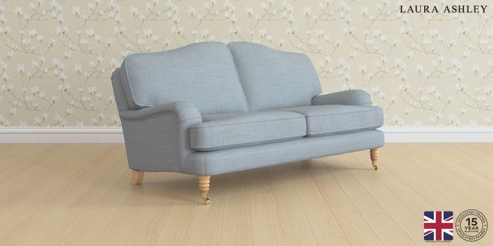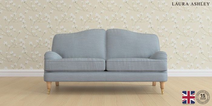6.12.1 Buy Lynden by Laura Ashley 3 Seater Small Sofa Kinsham Seaspray Blue Ornate Brass Castor - Light Oak from the Next UK online shop Click here to use our accessible website
