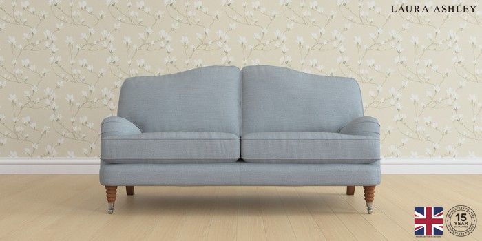 6.12.1 Buy Lynden by Laura Ashley 3 Seater Small Sofa Kinsham Seaspray Blue Ornate Chrome Castor - Teak from the Next UK online shop Click here to use our accessible website
