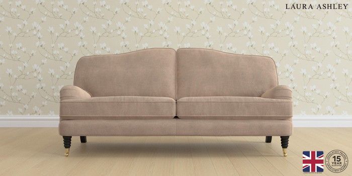 6.12.1 Buy Lynden by Laura Ashley 3 Seater Sofa Ailsworth Mink Natural Ornate Brass Castor - Black from the Next UK online shop Click here to use our accessible website