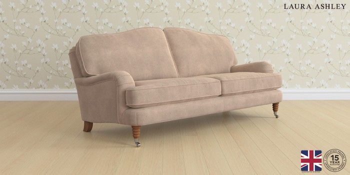 6.12.1 Buy Lynden by Laura Ashley 3 Seater Sofa Ailsworth Mink Natural Ornate Chrome Castor - Teak from the Next UK online shop Click here to use our accessible website
