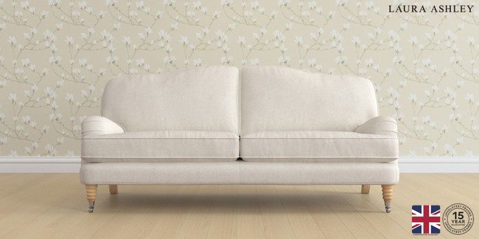 7.2.6 Buy Lynden by Laura Ashley 3 Seater Sofa Anneliese Oyster Natural Ornate Chrome Castor - Light Oak from the Next UK online shop Click here to use our accessible website