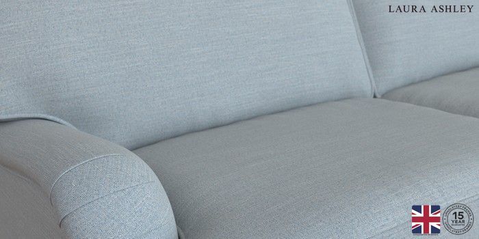 6.12.1 Buy Lynden by Laura Ashley 3 Seater Sofa Kinsham Seaspray Blue Ornate Chrome Castor - Teak from the Next UK online shop Click here to use our accessible website