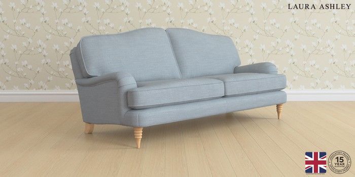 6.12.1 Buy Lynden by Laura Ashley 3 Seater Sofa Kinsham Seaspray Blue Ornate Turned - Light Oak from the Next UK online shop Click here to use our accessible website