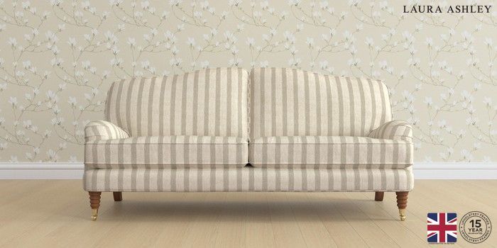 6.12.1 Buy Lynden by Laura Ashley 3 Seater Sofa Kinsham Stripe Natural Ornate Brass Castor - Teak from the Next UK online shop Click here to use our accessible website