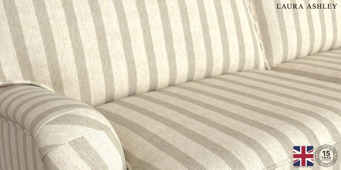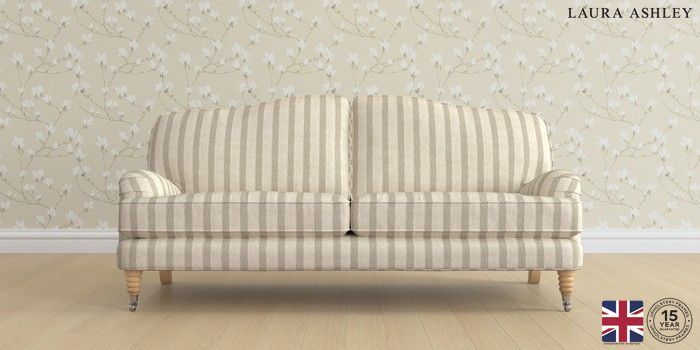 6.12.1 Buy Lynden by Laura Ashley 3 Seater Sofa Kinsham Stripe Natural Ornate Chrome Castor - Light Oak from the Next UK online shop Click here to use our accessible website