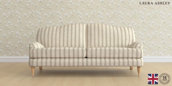 6.12.1 Buy Lynden by Laura Ashley 3 Seater Sofa Kinsham Stripe Natural Ornate Turned - Light Oak from the Next UK online shop Click here to use our accessible website