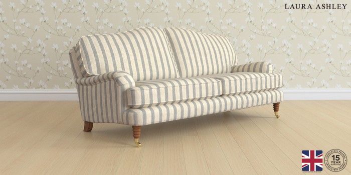 6.12.1 Buy Lynden by Laura Ashley 3 Seater Sofa Kinsham Stripe Seaspray Blue Ornate Brass Castor - Teak from the Next UK online shop Click here to use our accessible website