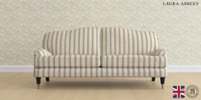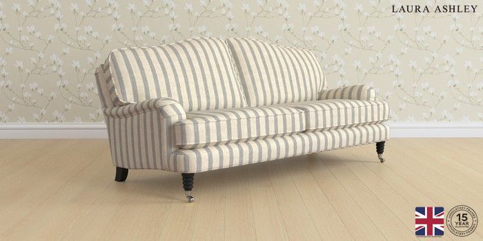 6.12.1 Buy Lynden by Laura Ashley 3 Seater Sofa Kinsham Stripe Seaspray Blue Ornate Chrome Castor - Black from the Next UK online shop Click here to use our accessible website