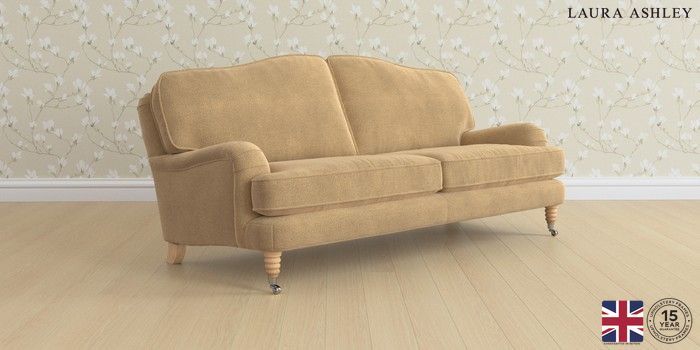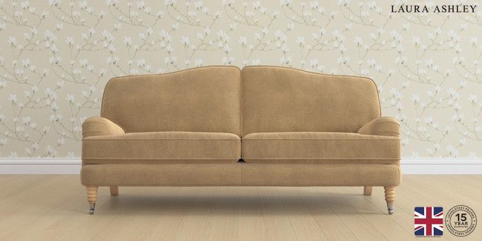6.12.1 Buy Lynden by Laura Ashley 3 Seater Sofa Lundar Chenille Caramel Natural Ornate Chrome Castor - Light Oak from the Next UK online shop Click here to use our accessible website