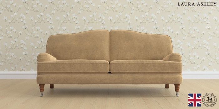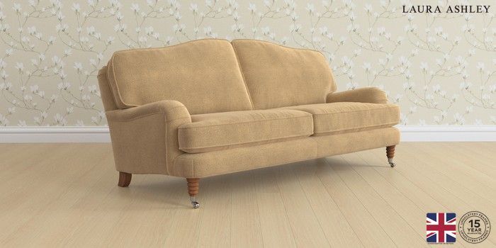 6.12.1 Buy Lynden by Laura Ashley 3 Seater Sofa Lundar Chenille Caramel Natural Ornate Chrome Castor - Teak from the Next UK online shop Click here to use our accessible website