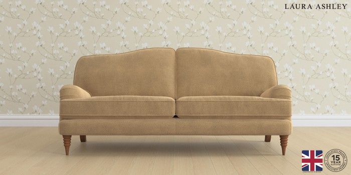 6.12.1 Buy Lynden by Laura Ashley 3 Seater Sofa Lundar Chenille Caramel Natural Ornate Turned - Teak from the Next UK online shop Click here to use our accessible website