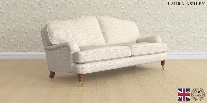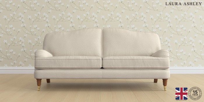 6.12.1 Buy Lynden by Laura Ashley 3 Seater Sofa Melbreak Geo Light Natural Ornate Brass Castor - Teak from the Next UK online shop Click here to use our accessible website
