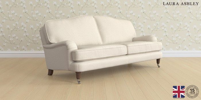 6.12.1 Buy Lynden by Laura Ashley 3 Seater Sofa Melbreak Geo Light Natural Ornate Chrome Castor - Chestnut from the Next UK online shop Click here to use our accessible website
