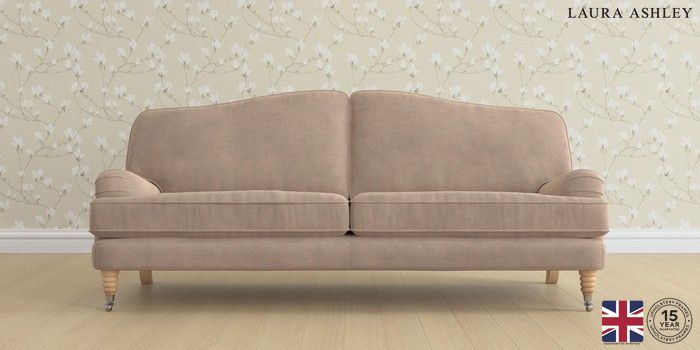 6.12.1 Buy Lynden by Laura Ashley 4 Seater Sofa Ailsworth Mink Natural Ornate Chrome Castor - Light Oak from the Next UK online shop Click here to use our accessible website