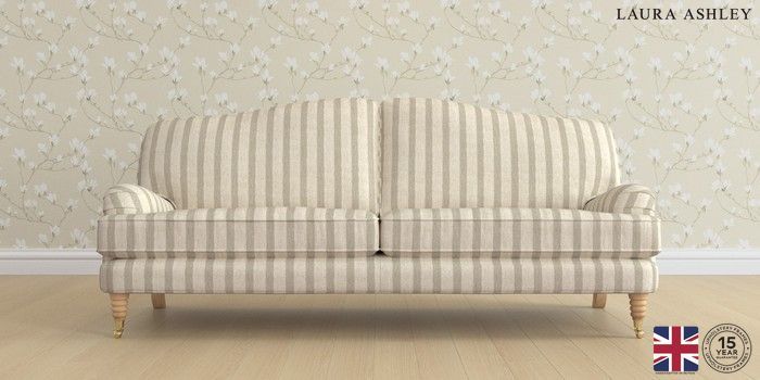 6.12.1 Buy Lynden by Laura Ashley 4 Seater Sofa Kinsham Stripe Natural Ornate Brass Castor - Light Oak from the Next UK online shop Click here to use our accessible website