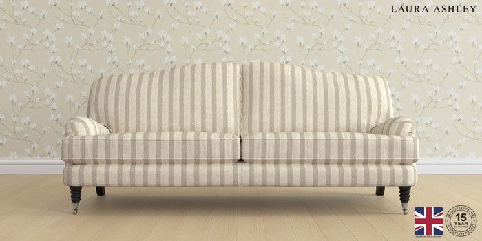 6.12.1 Buy Lynden by Laura Ashley 4 Seater Sofa Kinsham Stripe Natural Ornate Chrome Castor - Black from the Next UK online shop Click here to use our accessible website
