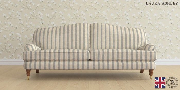 6.12.1 Buy Lynden by Laura Ashley 4 Seater Sofa Kinsham Stripe Seaspray Blue Ornate Brass Castor - Teak from the Next UK online shop Click here to use our accessible website
