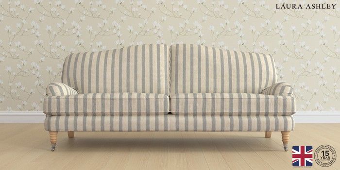 6.12.1 Buy Lynden by Laura Ashley 4 Seater Sofa Kinsham Stripe Seaspray Blue Ornate Chrome Castor - Light Oak from the Next UK online shop Click here to use our accessible website