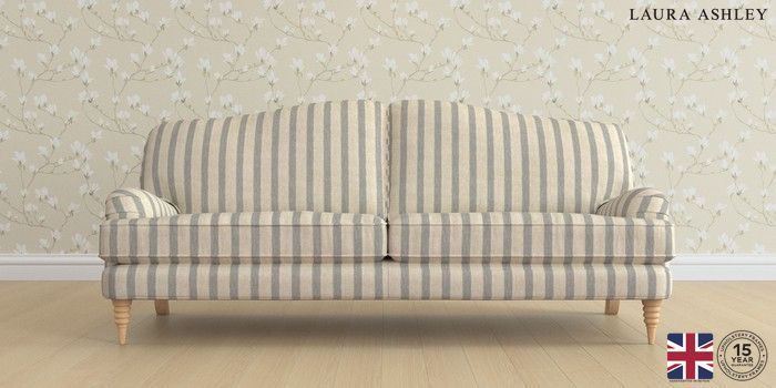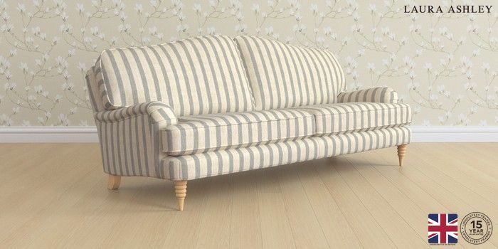 6.12.1 Buy Lynden by Laura Ashley 4 Seater Sofa Kinsham Stripe Seaspray Blue Ornate Turned - Light Oak from the Next UK online shop Click here to use our accessible website