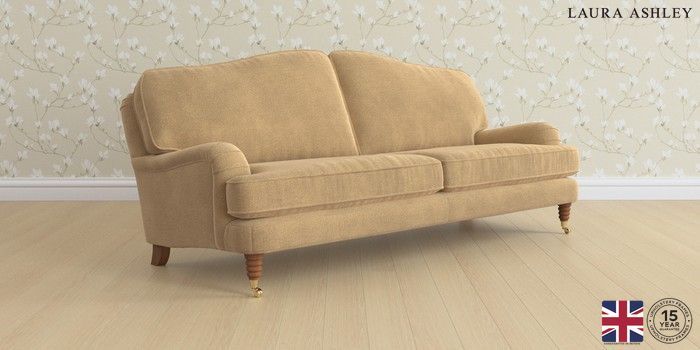 6.12.1 Buy Lynden by Laura Ashley 4 Seater Sofa Lundar Chenille Caramel Natural Ornate Brass Castor - Teak from the Next UK online shop Click here to use our accessible website