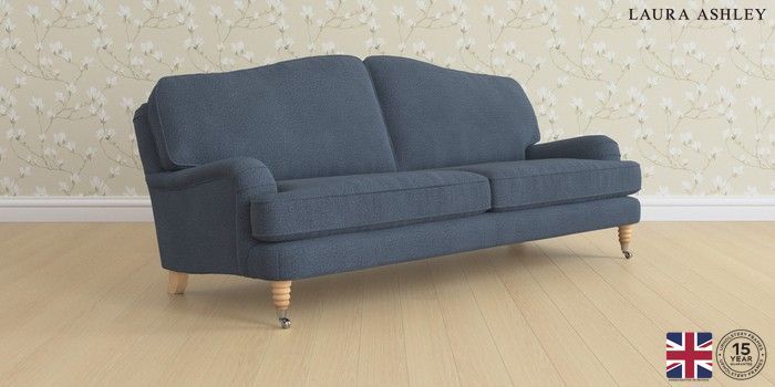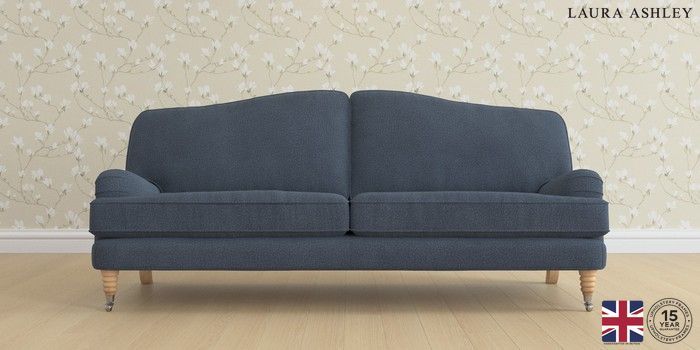 6.12.1 Buy Lynden by Laura Ashley 4 Seater Sofa Lundar Chenille Navy Blue Ornate Chrome Castor - Light Oak from the Next UK online shop Click here to use our accessible website