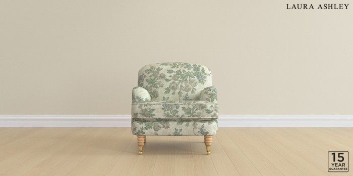 6.11.4 Buy Lynden by Laura Ashley Armchair Ellerby Seaspray Blue Ornate Brass Castor - Light Oak from the Next UK online shop Click here to use our accessible website