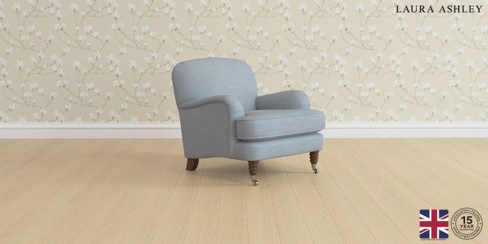 6.12.1 Buy Lynden by Laura Ashley Armchair Kinsham Seaspray Blue Ornate Chrome Castor - Chestnut from the Next UK online shop Click here to use our accessible website