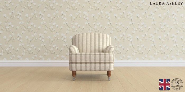 6.12.1 Buy Lynden by Laura Ashley Armchair Kinsham Stripe Natural Ornate Chrome Castor - Teak from the Next UK online shop Click here to use our accessible website