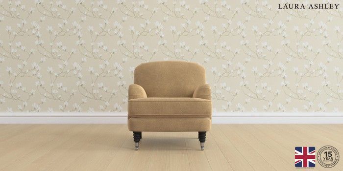 6.12.1 Buy Lynden by Laura Ashley Armchair Lundar Chenille Caramel Natural Ornate Chrome Castor - Black from the Next UK online shop Click here to use our accessible website
