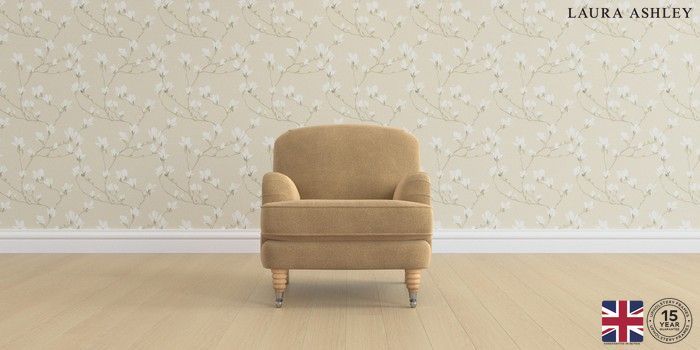6.12.1 Buy Lynden by Laura Ashley Armchair Lundar Chenille Caramel Natural Ornate Chrome Castor - Light Oak from the Next UK online shop Click here to use our accessible website