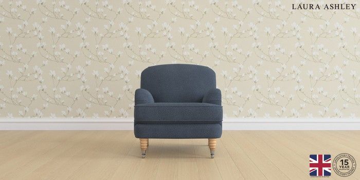 6.12.1 Buy Lynden by Laura Ashley Armchair Lundar Chenille Navy Blue Ornate Chrome Castor - Light Oak from the Next UK online shop Click here to use our accessible website