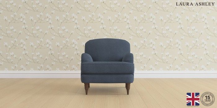 6.12.1 Buy Lynden by Laura Ashley Armchair Lundar Chenille Navy Blue Ornate Turned - Chestnut from the Next UK online shop Click here to use our accessible website
