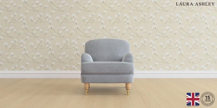 6.12.1 Buy Lynden by Laura Ashley Armchair Peyton Powder Blue Ornate Brass Castor - Light Oak from the Next UK online shop Click here to use our accessible website