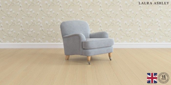 6.12.1 Buy Lynden by Laura Ashley Armchair Peyton Powder Blue Ornate Chrome Castor - Light Oak from the Next UK online shop Click here to use our accessible website
