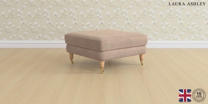 6.12.1 Buy Lynden by Laura Ashley Extra Large Footstool Ailsworth Mink Natural Ornate Brass Castor - Light Oak from the Next UK online shop Click here to use our accessible website