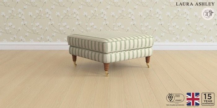 6.11.4 Buy Lynden by Laura Ashley Extra Large Footstool Kinsham Stripe Hedgerow Green Ornate Brass Castor - Teak from the Next UK online shop Click here to use our accessible website