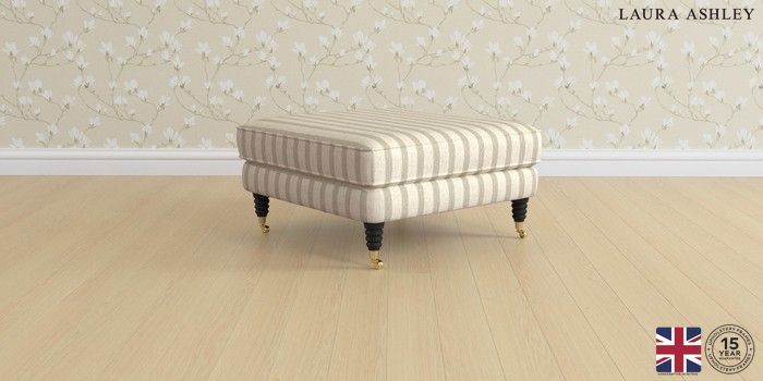 6.12.1 Buy Lynden by Laura Ashley Extra Large Footstool Kinsham Stripe Natural Ornate Brass Castor - Black from the Next UK online shop Click here to use our accessible website