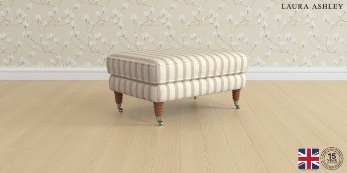 6.12.1 Buy Lynden by Laura Ashley Footstool Kinsham Stripe Natural Ornate Chrome Castor - Teak from the Next UK online shop Click here to use our accessible website