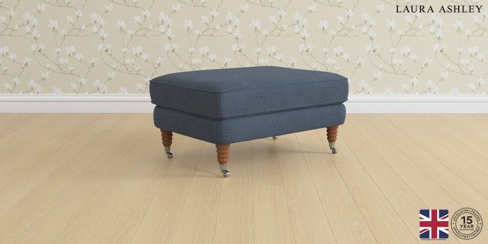 6.12.1 Buy Lynden by Laura Ashley Footstool Lundar Chenille Navy Blue Ornate Chrome Castor - Teak from the Next UK online shop Click here to use our accessible website