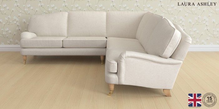 7.2.6 Buy Lynden by Laura Ashley Medium Corner Sofa - Universal Anneliese Oyster Natural Ornate Brass Castor - Light Oak from the Next UK online shop Click here to use our accessible website