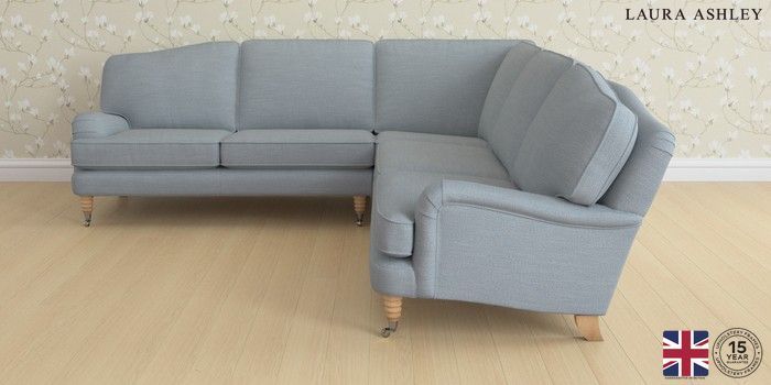 6.12.1 Buy Lynden by Laura Ashley Medium Corner Sofa - Universal Kinsham Seaspray Blue Ornate Chrome Castor - Light Oak from the Next UK online shop Click here to use our accessible website