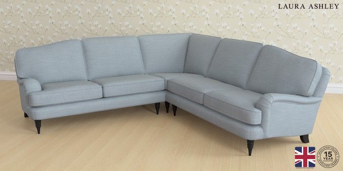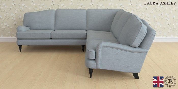 6.12.1 Buy Lynden by Laura Ashley Medium Corner Sofa - Universal Kinsham Seaspray Blue Ornate Turned - Black from the Next UK online shop Click here to use our accessible website