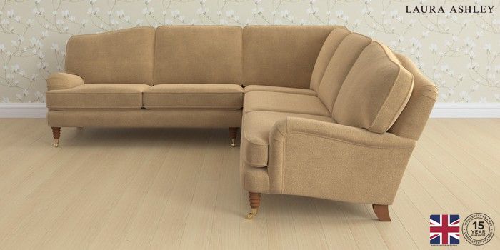 6.12.1 Buy Lynden by Laura Ashley Medium Corner Sofa - Universal Lundar Chenille Caramel Natural Ornate Brass Castor - Teak from the Next UK online shop Click here to use our accessible website