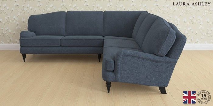 6.12.1 Buy Lynden by Laura Ashley Medium Corner Sofa - Universal Lundar Chenille Navy Blue Ornate Turned - Black from the Next UK online shop Click here to use our accessible website