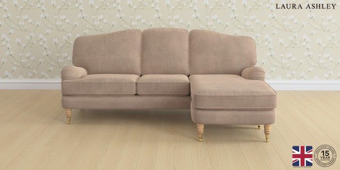 6.12.1 Buy Lynden by Laura Ashley Medium Sofa Chaise - Universal Ailsworth Mink Natural Ornate Brass Castor - Light Oak from the Next UK online shop Click here to use our accessible website