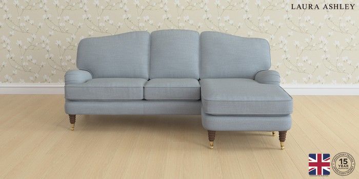 6.12.1 Buy Lynden by Laura Ashley Medium Sofa Chaise - Universal Kinsham Seaspray Blue Ornate Brass Castor - Chestnut from the Next UK online shop Click here to use our accessible website
