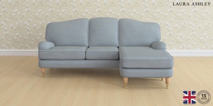 6.12.1 Buy Lynden by Laura Ashley Medium Sofa Chaise - Universal Kinsham Seaspray Blue Ornate Brass Castor - Light Oak from the Next UK online shop Click here to use our accessible website