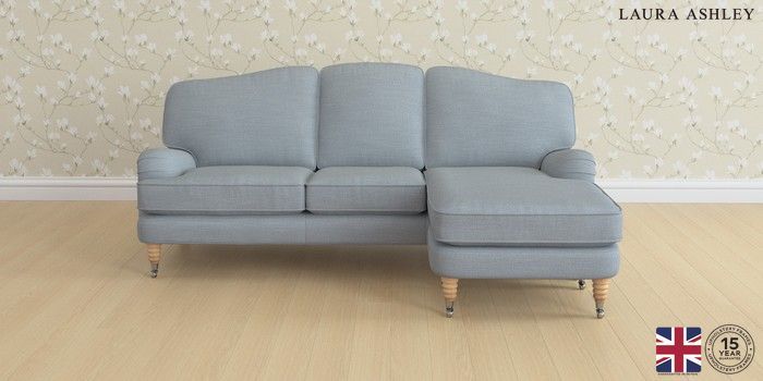 6.12.1 Buy Lynden by Laura Ashley Medium Sofa Chaise - Universal Kinsham Seaspray Blue Ornate Chrome Castor - Light Oak from the Next UK online shop Click here to use our accessible website