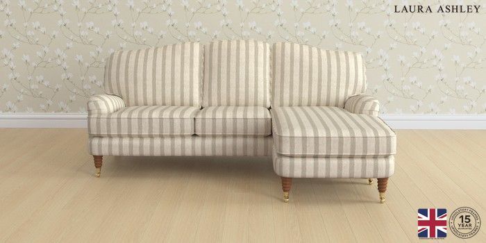 6.12.1 Buy Lynden by Laura Ashley Medium Sofa Chaise - Universal Kinsham Stripe Natural Ornate Brass Castor - Teak from the Next UK online shop Click here to use our accessible website
